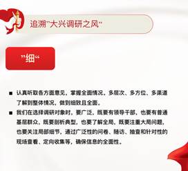 而“大兴调研之风”可以追溯到2003年2月25日,时任浙江省委书记的习近平总书记在《浙江日报》“之江新语”专栏发表了一篇题为《调研工作务求“深、实、细、准、效”》的短文,文章提出在调研工作中,“一定要保持求真务实的作风,努力在求深、求实、求细、求准、求效上下功夫。”这篇文章虽然篇幅短小,但内容深邃,把调查研究应该注意到的问题都说深说透了。年轻干部应该践行习近平总书记提出的“求深、求实、求细、求准、求效”这“五点”要求,通过践行这“五点”要求,来提高调查研究的水平,增强调查研究能力。随后徐传湘同志分别展开讲解了这五点要求。