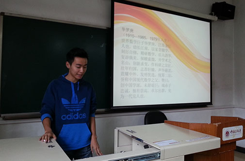有的班级同学他讲述的是优秀党员的事迹。如经济学一班便选择了丛飞。杨超同学以慷慨激昂的演讲道出丛飞伟大的一生。“及成名,义演十余年,助学百八童,善资三百万。至罹胃癌,然扶贫之心未减。嗟夫,其历千难而志不衰,遭二竖而气不竭者,何哉?是胸怀广大、心地慈悲故也。”又如黄睿之同学讲述的数学家华罗庚的事迹。“壮年归国,志荐轩辕,声华藉甚,震耀中外。发明优选、统筹二法,誉称中国现代数学之父。赞曰:创中国学派,未辞艰巨;竭赤子忠诚,独有崇高。卓尔出群,允为一代完人也。演讲的同学慷慨激昂,深深地感染了大家。”