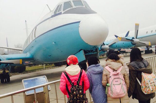 上午八点半,同学们在学校南门集合后出发,在公交车上历经一个小时的颠簸,终于到达了目的地——中国航空博物馆。中国航空博物馆坐落在风景秀丽的北京昌平大汤山脚下,占地面积1000多亩。它是中国第一座对外开放的大型航空博物馆,航空博物馆是一处以飞机文物为主体的亚洲最大、世界屈指可数的航空珍品荟萃地。筹建工作始于1986年10月,经过三年时间的采集装修,于1989年11月11日正式向社会开放。目前已收存100多种型号200多架飞机,还有地空导弹、高炮、防空雷达、航空炸弹、航空照相机等700多件武器装备样品。其中,很多系国家珍贵文物、世界航空珍品,中国航空博物馆已丰富的实物、翔实的史料,相人们展示新中国航空事业蓬勃发展和人民空军发展壮大的光辉历程,向人们讲述中华民族航空史上一个个动人的故事。