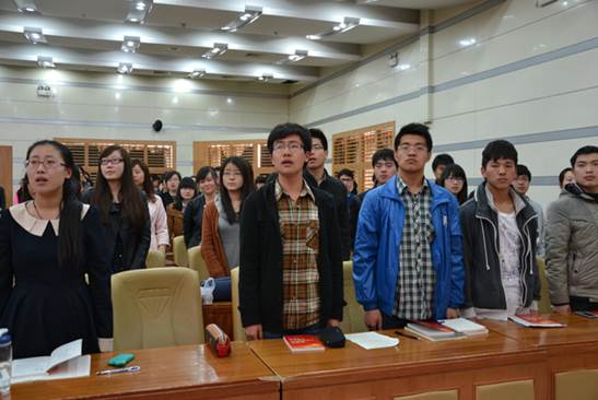 大会第三项,分党委副书记李欣宇副教授讲话。他首先指出了此次培训班的两个特点即“第47期”和“八院联合”。他说到,“47”这一数字体现了党校培训班的历史传承性,在这之前,政法大学的所有党员积极分子都曾在该课堂上接受过党组织的教育,并且在这以后也还会有更多的人参加培训,接受党的基本理论学习教育。“八院”指法大非法学专业八个学院的联合。八院联合分党校由各学院轮流承办,由起初的四院联合到六院联合,再到现在的八院联合,规模一次次扩大。他强调了八院联合的特点及优势,即可以实现更大范围的交流,也具备了更高的师资,更好地方便同学们互相交流、互相学习。