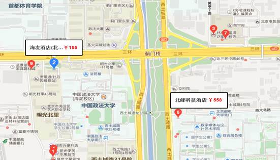 外地人员可参考下图住宿推荐:海友酒店、北邮科技酒店