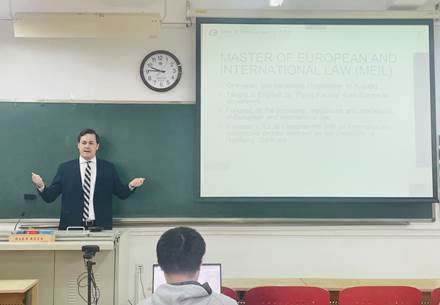 首先,Monty院长针对中欧法学院项目中涉及的院校及教师团队做了简要介绍,同时,对该项目的入学条件、教学计划、学位授予等问题做了详细的讲解。随后,马安娜主任对中欧法学院的项目定位及特色做了分析。接下来,万琪珑师兄分享了个人在项目中的学习经历,为在校师弟师妹们提出了宝贵建议。