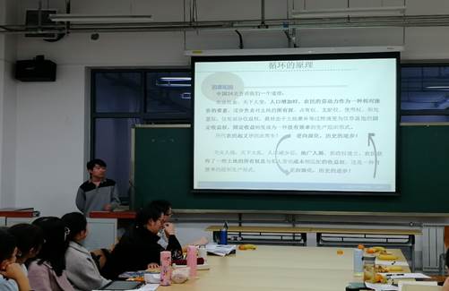 2018级政治经济学专业郑孝敬同学介绍了汲取性制度和包容性制度的涵义、包容性制度和长期经济增长的关系,最后提出了自己的思考和疑问。她提出,作者关于政治制度对经济发展的影响论证是通过列举十多个国家的经济发展历史来实现的,但是这些史实的罗列显得很有主观性,作者只选择了对结论有帮助的例子而主观性放弃了跟结论不符的例子。